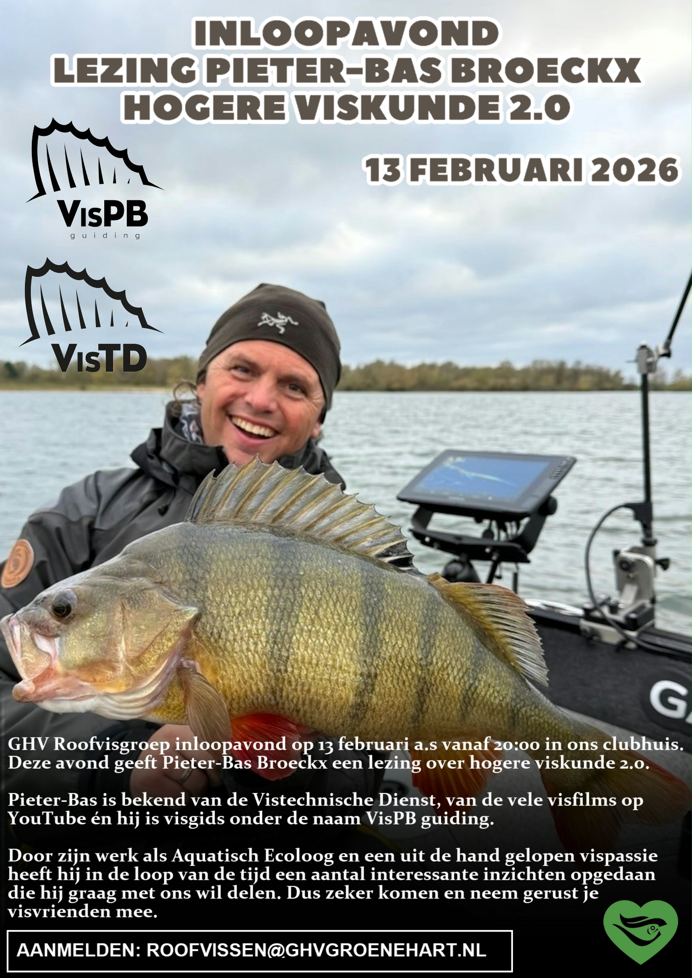 GHV roofvisgroep inloopavond vrijdag 13 februari, clubhuis De Topstek vanaf 20:00 uur, open 19:30 uur.